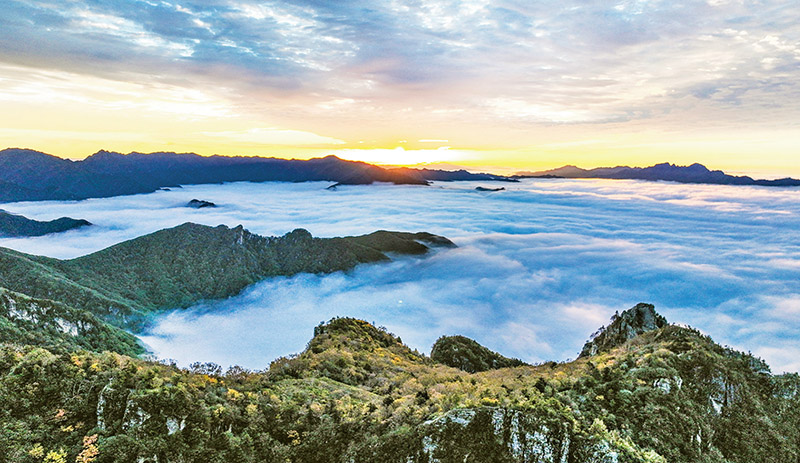 圖為2023年10月3日,雨后初晴的陜西秦嶺牛背梁國家森林公園出現(xiàn)云海奇觀,美不勝收。 新華社發(fā) 張嵐/攝