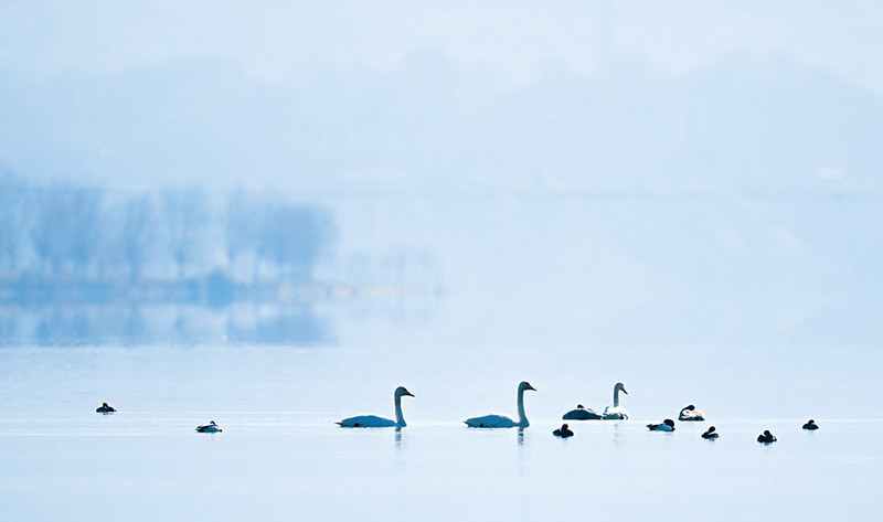 近年來,青海省加大力度保護(hù)治理境內(nèi)黃河流域,為越冬候鳥提供良好棲息地。圖為2023年11月30日,天鵝與赤麻鴨在海東市化隆回族自治縣群科鎮(zhèn)境內(nèi)的黃河上游弋。 新華社記者 張龍/攝