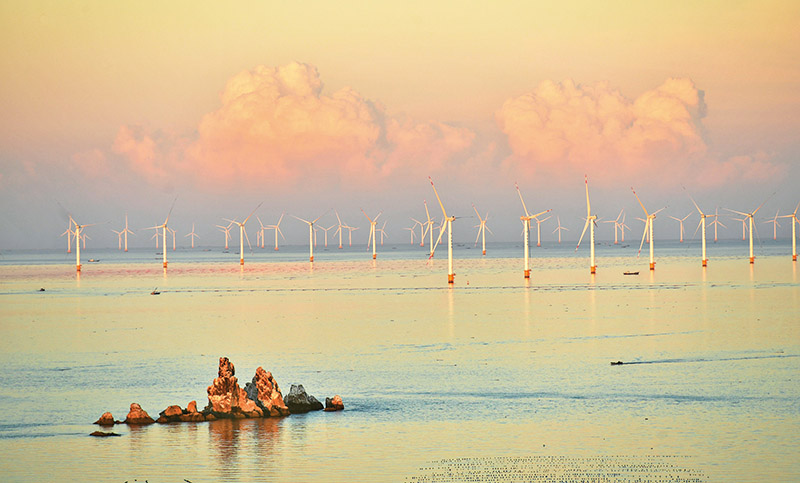 圖為2023年9月13日拍攝的遼寧大連莊河海上風(fēng)電項目。 新華社記者 楊青/攝