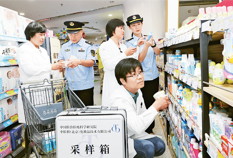 市場監(jiān)管是建立統(tǒng)一開放、競爭有序的現(xiàn)代市場體系的關(guān)鍵環(huán)節(jié)。圖為2023年5月23日,北京市東城區(qū)市場監(jiān)管局工作人員在對兒童用品進行抽檢取樣。 國家市場監(jiān)管總局供圖 董芳忠/攝