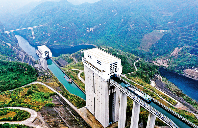 圖為貴州烏江構(gòu)皮灘水電站通航工程。構(gòu)皮灘水電站是“西電東送”的標(biāo)志性工程之一,是中國華電集團(tuán)有限公司已建成的最大水電站。水電站通航工程是世界上通航水頭最高的通航建筑物,投入使用后打通了烏江“黃金水道”和貴陽、遵義的出海通道,將有力推動(dòng)貴州融入長江經(jīng)濟(jì)帶發(fā)展。 中國華電集團(tuán)有限公司供圖