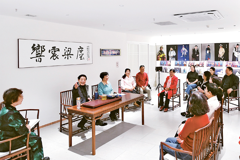 文化碩果,百姓共享。近年來,河北省設(shè)立一批文化名家工作室,囊括書法、美術(shù)、攝影、戲曲、收藏等各藝術(shù)門類,方便群眾近距離與名家交流、向名家學(xué)藝。圖為2023年10月27日,河北梆子名家雷保春(左二)在工作室與群眾交流。 河北日報社供圖 張曉峰/攝