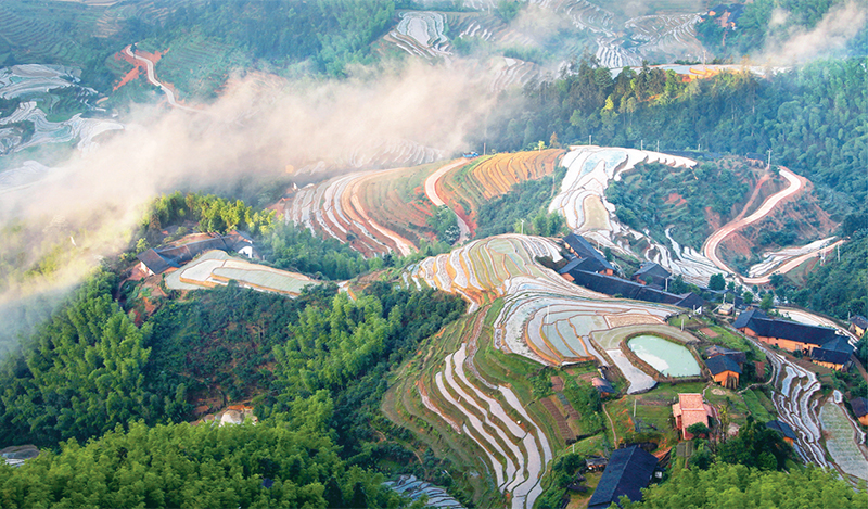 近年來(lái),水利部門(mén)堅(jiān)持山水林田湖草沙一體化保護(hù)和系統(tǒng)治理,扎實(shí)推進(jìn)水土流失綜合治理,強(qiáng)化江河湖庫(kù)生態(tài)保護(hù)治理。圖為入選2022年度(第九批)世界灌溉工程遺產(chǎn)名錄的江西省贛州市崇義縣上堡梯田,該工程包含完善的農(nóng)田水利灌溉系統(tǒng)和良好的生態(tài)保護(hù)系統(tǒng),充分體現(xiàn)了尊重自然、順應(yīng)自然、保護(hù)自然的理念。 水利部供圖 盧鑫平/攝
