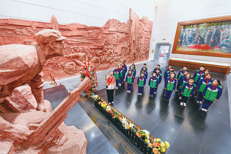 2023年12月12日,江西省南昌市松柏學校教育集團朝陽校區(qū)組織少先隊員,開展以“追尋紅色足跡 厚植愛國情懷”為主題的教育活動,增強勤奮學習、報效祖國的責任感使命感,讓革命薪火代代相傳。圖為當日在江西省革命烈士紀念堂,朝陽校區(qū)的老師為孩子們上愛國主義教育思政課。 中新社發(fā) 鮑贛生/攝