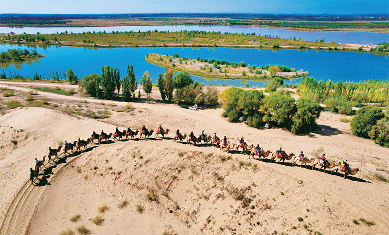 寧夏大力推動(dòng)荒漠化綜合防治,推進(jìn)生態(tài)環(huán)境質(zhì)量持續(xù)向好,讓全區(qū)各族群眾共享自然之美、生命之美、生活之美。圖為2023年10月29日拍攝的位于寧夏銀川市的黃沙古渡國(guó)家濕地公園。 寧夏日?qǐng)?bào)供圖 王猛/攝