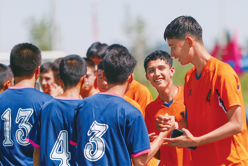 2023年8月30日,2023年黔新“石榴籽”杯青少年足球友誼賽在新疆喀什落下帷幕。友誼賽為期兩天,有來(lái)自貴州省黔西南布依族苗族自治州及新疆維吾爾自治區(qū)喀什地區(qū)、克孜勒蘇柯?tīng)柨俗巫灾沃莸?0支球隊(duì)200余名青少年參賽?;顒?dòng)期間,各族青少年球員在球場(chǎng)上切磋球技、在交流中建立友誼。圖為8月29日,黔西南U15男隊(duì)(左)和喀什U15男隊(duì)(右)參賽選手比賽結(jié)束后互相擊掌致意。 新華社記者 郝昭/攝