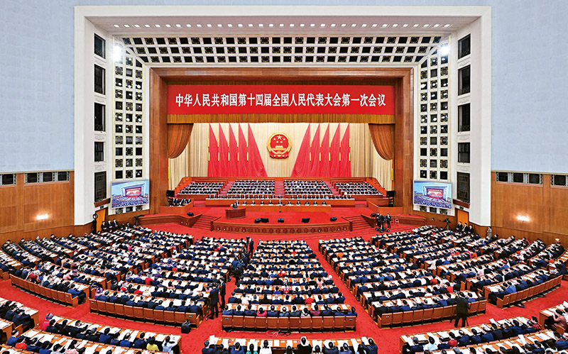圖為2023年3月5日,第十四屆全國(guó)人民代表大會(huì)第一次會(huì)議在北京人民大會(huì)堂開(kāi)幕。 新華社記者 翟健嵐/攝