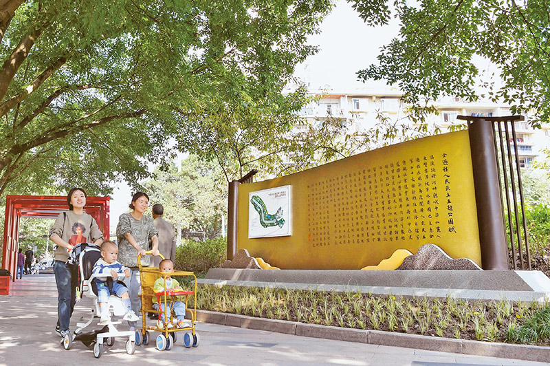 為充分展示全過(guò)程人民民主發(fā)展歷程、展現(xiàn)鮮活基層民主實(shí)踐、建設(shè)民主基層單元,重慶市九龍坡區(qū)打造了全過(guò)程人民民主主題公園。圖為2023年10月16日,該公園正式投用,迎來(lái)游客。 重慶市人大供圖