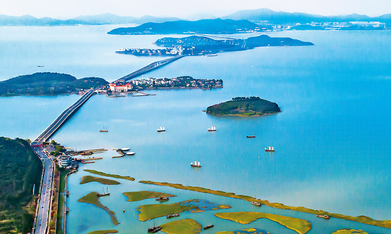 近年來(lái),江蘇省人大常委會(huì)通過(guò)開(kāi)展太湖水污染防治條例執(zhí)法檢查、組織人大代表開(kāi)展視察調(diào)研,持續(xù)推動(dòng)太湖生態(tài)不斷向好。圖為2022年5月25日拍攝的太湖美景。 江蘇省人大供圖