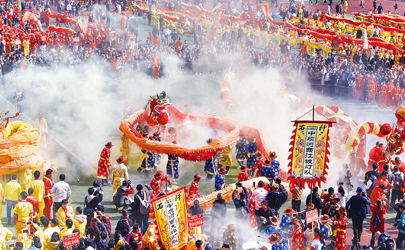 今日之中國,“文博熱”火爆,“文創(chuàng)風(fēng)”勁吹,陳列在廣闊大地上的遺產(chǎn)、書寫在古籍里的文字“活”起來了。“豐富人民群眾精神文化生活”、“大力發(fā)展文化產(chǎn)業(yè)”、“推進非物質(zhì)文化遺產(chǎn)保護傳承”……2024年政府工作報告對文化傳承與發(fā)展提出了明確要求。圖為2024年2月20日,人們在觀看貴州省石阡縣仡佬毛龍節(jié)舞龍大賽。 新華社記者 楊文斌/攝