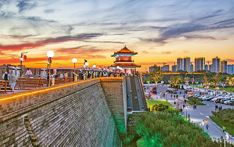 歷史文化是城市的靈魂,要像愛惜自己的生命一樣保護(hù)好城市歷史文化遺產(chǎn)。近年來,河北省正定縣大力實施古城風(fēng)貌提升工程,推動歷史文化和現(xiàn)代生活更好融合。圖為2021年10月10日拍攝的正定古城南城門。 人民圖片 魏宏斌/攝