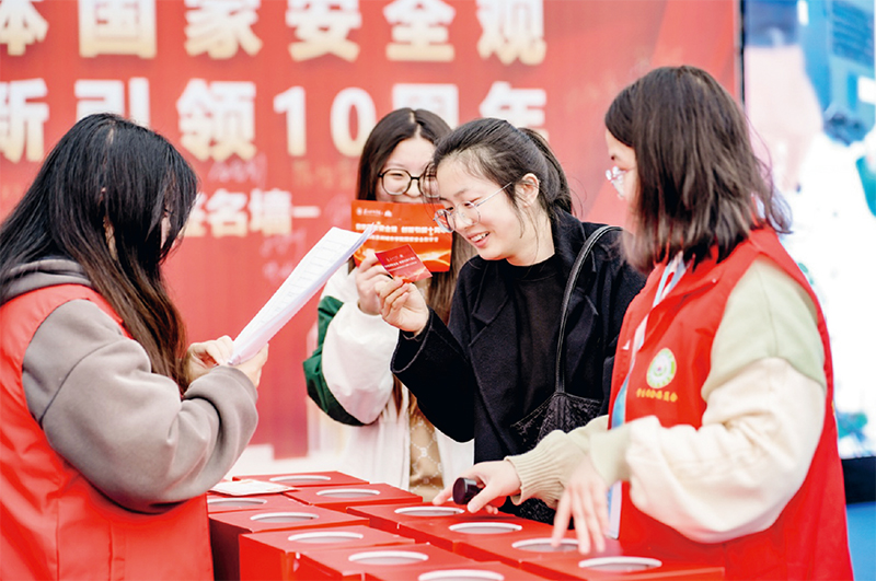 2024年4月15日是第九個(gè)全民國家安全教育日,各地開展豐富多彩的活動(dòng),積極宣傳普及國家安全知識(shí)。圖為2024年4月8日,蘇州城市學(xué)院師生參加“總體國家安全觀”知識(shí)問答等互動(dòng)活動(dòng)。 江蘇省蘇州市吳中區(qū)委辦公室供圖