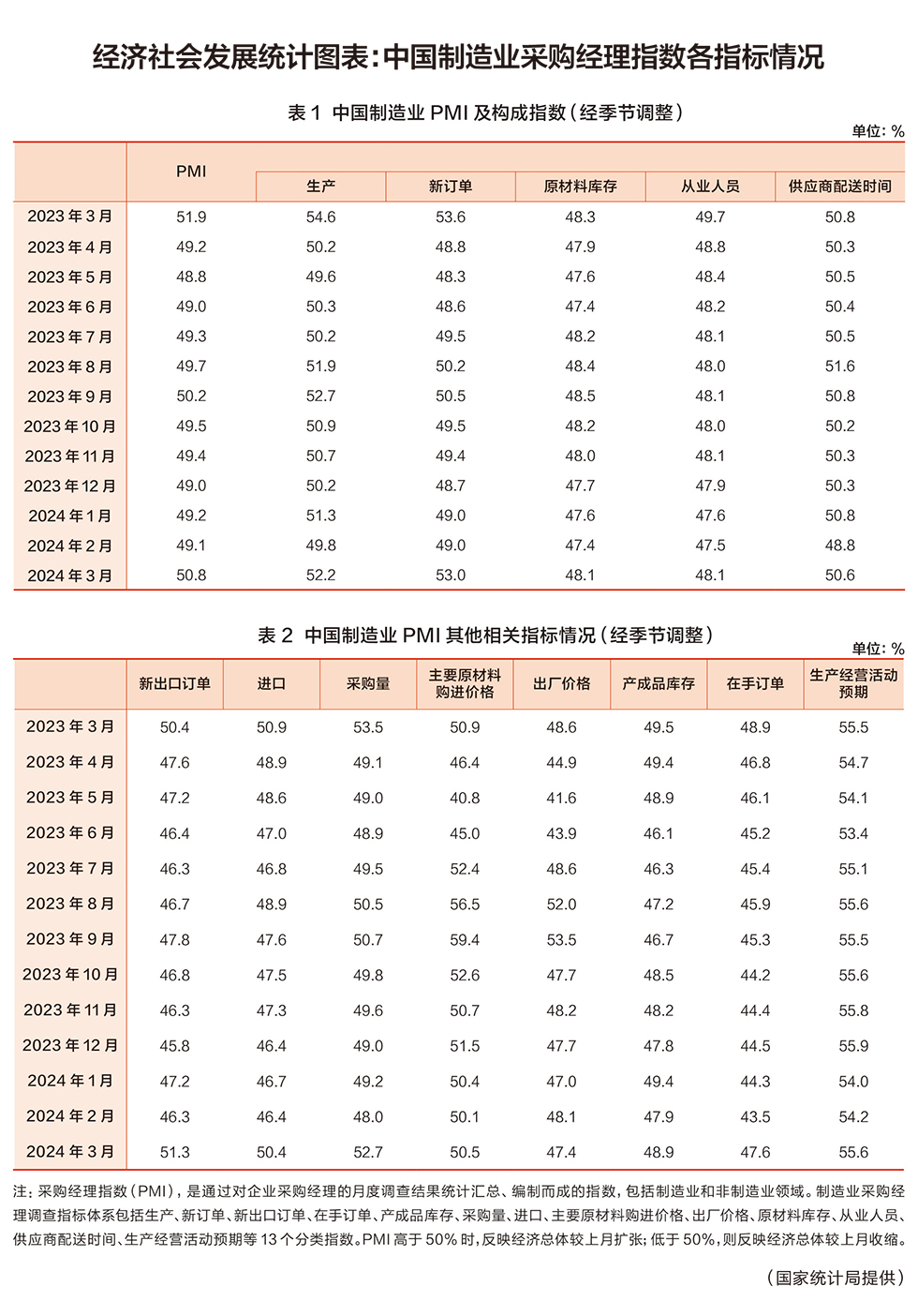 經(jīng)濟(jì)社會(huì)發(fā)展統(tǒng)計(jì)圖表:中國(guó)制造業(yè)采購(gòu)經(jīng)理指數(shù)各指標(biāo)情況