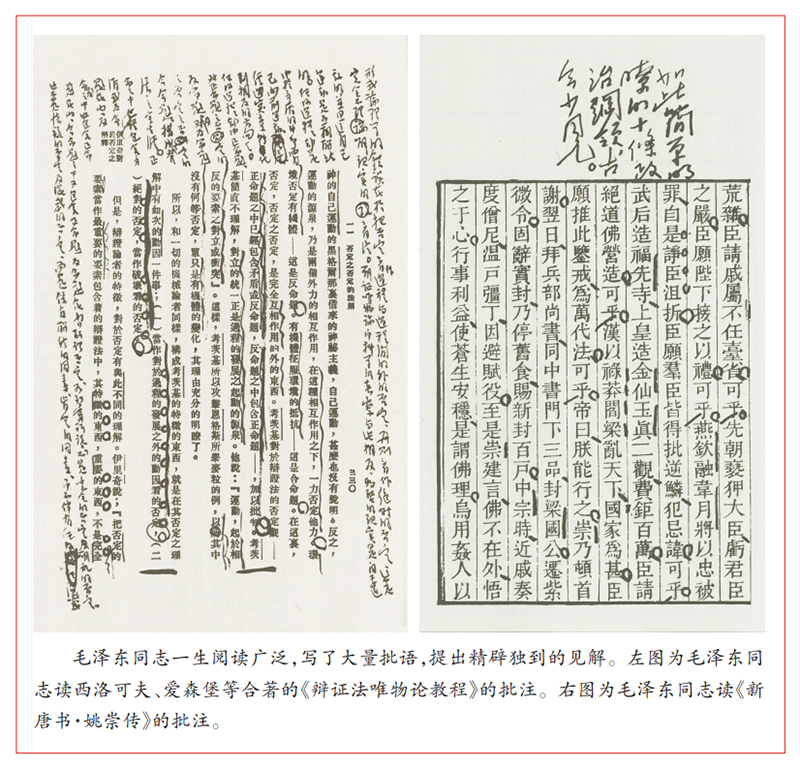 對于哲學(xué)書籍,毛澤東同志一生涉獵十分廣泛,既讀馬列經(jīng)典中的哲學(xué)書,也讀艾思奇、李達、普列漢諾夫、愛森堡、西洛可夫、米丁、尤金、河上肇等中外學(xué)者的書;既讀柏拉圖、康德、黑格爾、杜威、羅素等西方哲學(xué)家的書,也讀中國古代老子、孔子、墨子、莊子、孟子、荀子、韓非子、王充、張載、朱熹、王陽明等的哲學(xué)論著以及近代以來康有為、梁啟超、章士釗、楊昌濟、梁漱溟、馮友蘭、潘梓年、周谷城、任繼愈等人研究哲學(xué)和邏輯學(xué)的論著。