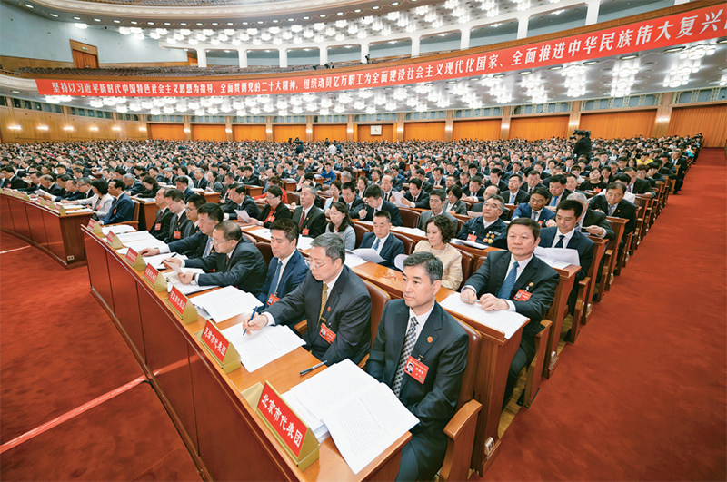圖為2023年10月9日,中國工會第十八次全國代表大會在北京人民大會堂開幕。 新華社記者 才揚/攝