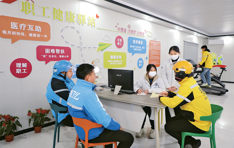 圖為2023年12月23日,在位于福建省泉州市臺商投資區(qū)張坂鎮(zhèn)的“職工健康驛站”,醫(yī)務人員正在為戶外勞動者提供健康體檢服務。 全國總工會供圖