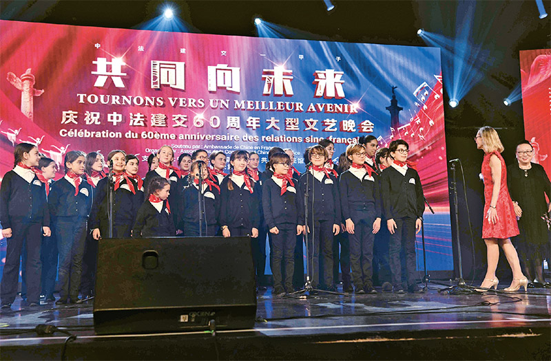 當(dāng)?shù)貢r(shí)間2024年1月16日晚,以“共同向未來(lái)”為主題的慶祝中法建交60周年大型文藝晚會(huì)在巴黎舉辦。圖為法國(guó)寶麗聲童聲合唱團(tuán)演唱歌曲。 中新社發(fā)