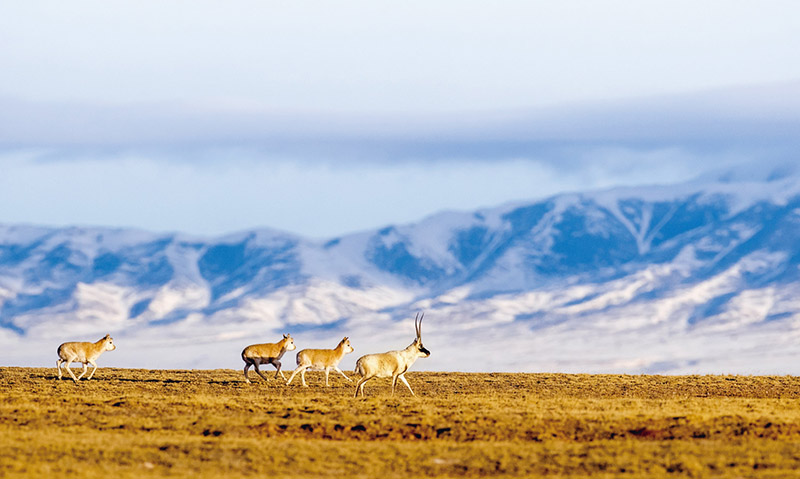 設(shè)立國家公園、建立國家公園體制,是生態(tài)文明和美麗中國建設(shè)具有全局性、統(tǒng)領(lǐng)性、標(biāo)志性的重大制度創(chuàng)新。圖為在三江源國家公園可可西里國家級自然保護(hù)區(qū)拍攝的藏羚羊。 自然影像中國供圖 謝建國/攝