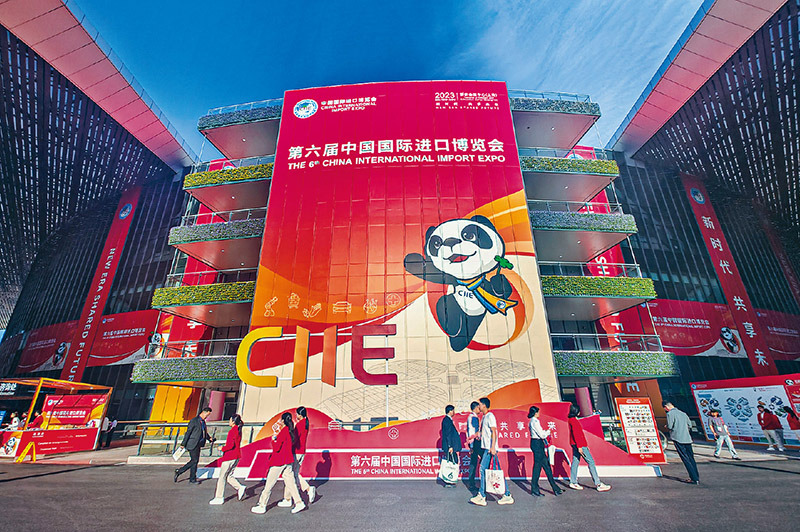 以開放促改革、促發(fā)展,是我國改革發(fā)展的成功實(shí)踐。中國國際進(jìn)口博覽會成功舉辦6屆,已經(jīng)成為我國構(gòu)建新發(fā)展格局的窗口、推動高水平開放的平臺、全球共享的國際公共產(chǎn)品。圖為2023年11月5日,人們在第六屆進(jìn)博會上參觀。 人民圖片 王初/攝