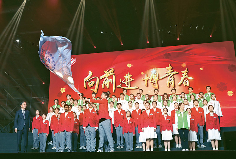 2023年10月17日,第六屆中國國際進口博覽會志愿者上崗宣誓儀式在國家會展中心(上海)舉行,5700余名志愿者宣誓上崗。圖為當(dāng)日拍攝的志愿者總隊授旗儀式。 新華社記者 劉穎/攝