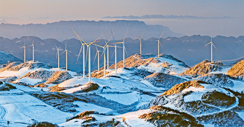 我國持續(xù)推進產業(yè)結構和能源結構調整,為能源電力綠色低碳轉型奠定了堅實基礎。圖為2024年1月24日拍攝的湖北省宜昌市秭歸縣云臺荒風力發(fā)電場。 人民圖片 雷勇/攝