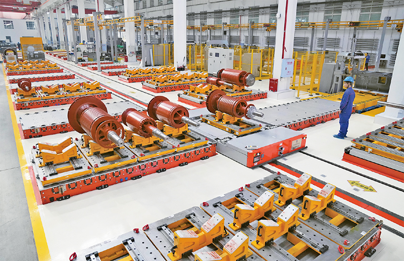 發(fā)展新質(zhì)生產(chǎn)力不是忽視、放棄傳統(tǒng)產(chǎn)業(yè),是要用先進(jìn)技術(shù)改造提升傳統(tǒng)產(chǎn)業(yè)。圖為2024年2月29日,在哈電集團(tuán)佳木斯電機(jī)股份有限公司的高壓電機(jī)數(shù)字化裝配車間,工作人員在查看數(shù)字化設(shè)備運(yùn)行情況。 新華社記者 王建威/攝