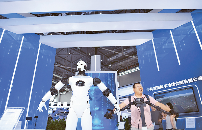 世界制造業(yè)大會(huì)是宣傳展示先進(jìn)制造業(yè)發(fā)展成果、促進(jìn)制造業(yè)國(guó)際合作的重要窗口和平臺(tái)。圖為2023年9月20日,在安徽合肥舉行的2023世界制造業(yè)大會(huì)上,一名觀眾在體驗(yàn)一款VR遠(yuǎn)程抓取機(jī)器人。 新華社記者 張端/攝