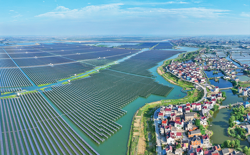 圖為2024年5月20日,安徽省馬鞍山市當(dāng)涂縣大隴鎮(zhèn)的雙潭湖漁光互補光伏電站。 人民圖片 李成林/攝