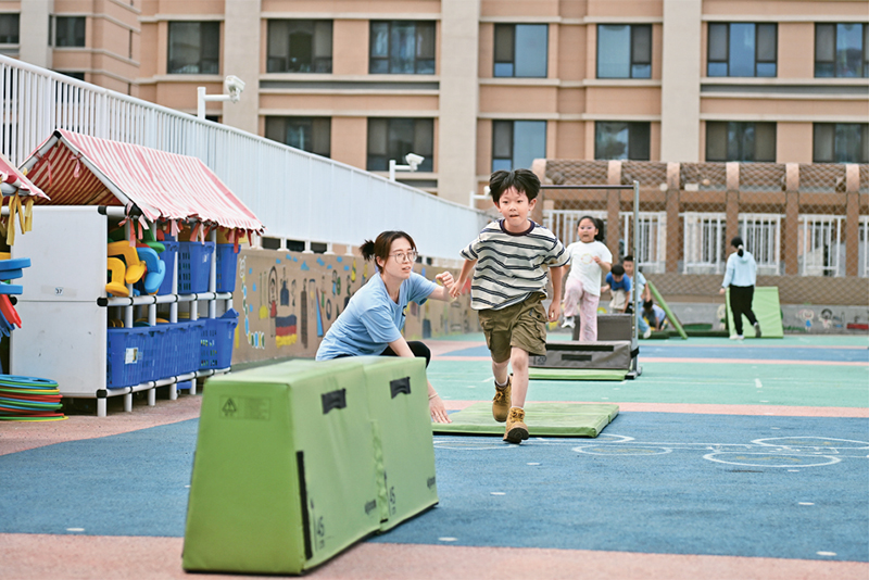 近年來,河北雄安新區(qū)通過創(chuàng)新教育發(fā)展體制機制、高標(biāo)準(zhǔn)配建教育設(shè)施、引入專業(yè)教師隊伍、引進(jìn)優(yōu)質(zhì)教育資源等方式,不斷推動教育高質(zhì)量發(fā)展。圖為2024年5月23日,當(dāng)?shù)赜變簣@的孩子們在室外活動。 新華社記者 牟宇/攝