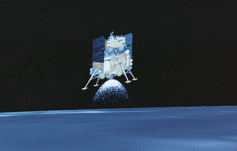 2024年6月2日清晨,嫦娥六號成功著陸在月球背面南極—艾特肯盆地預選著陸區(qū),開啟人類探測器首次在月球背面實施的樣品采集任務。圖為2024年6月2日,在北京航天飛行控制中心屏幕上拍攝的嫦娥六號著陸器和上升器組合體著陸月背的模擬動畫畫面。 新華社記者 金立旺/攝