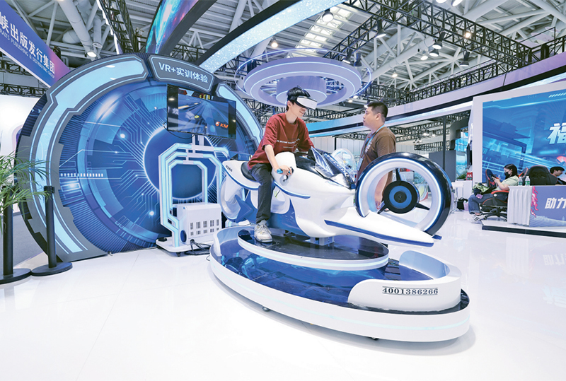 第七屆數(shù)字中國建設峰會于2024年5月24日在福建省福州市開幕,峰會主題為“釋放數(shù)據(jù)要素價值,發(fā)展新質生產(chǎn)力”。圖為市民在峰會現(xiàn)場體驗區(qū)網(wǎng)龍展區(qū)體驗光速飛輪VR摩托競速項目。 中新社發(fā) 王旺旺/攝