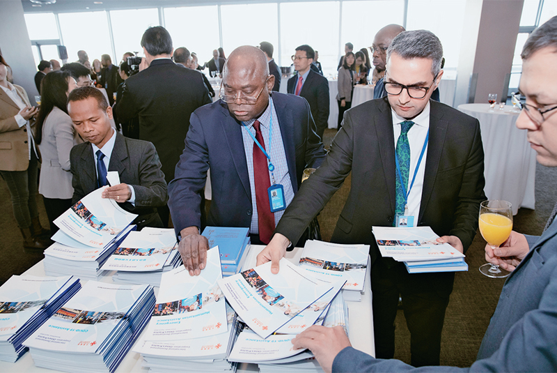 當(dāng)?shù)貢r間2023年4月19日,“全球發(fā)展倡議新進(jìn)展 可持續(xù)發(fā)展議程新行動”主題展覽在紐約聯(lián)合國總部舉行。展覽以圖片、文字、視頻的形式展現(xiàn)了全球發(fā)展倡議八大重點合作領(lǐng)域與聯(lián)合國17個可持續(xù)發(fā)展目標(biāo)深入對接的具體路徑和豐富實踐,以及全球發(fā)展促進(jìn)中心的成長經(jīng)歷和主要公共產(chǎn)品。圖為與會嘉賓取閱國家國際發(fā)展合作署發(fā)布的報告——《國際發(fā)展合作的中國實踐》。 中新社記者 廖攀/攝