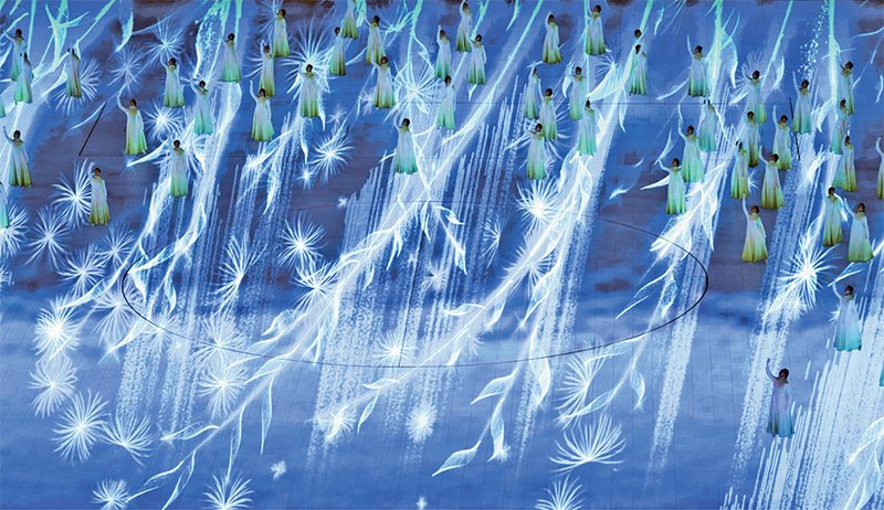 在北京冬奧會、成都大運會和杭州亞運會開閉幕式上,一幅幅中式美學構圖的畫面,演繹了中國式浪漫,向世界展示了中華民族的悠久歷史和燦爛文化。圖為2022年2月20日晚,北京冬奧會閉幕式上演“折柳寄情”,展現中式惜別之禮。 視覺中國供圖