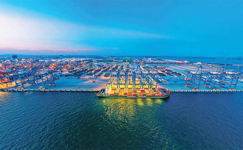 長(zhǎng)江入??诘拈L(zhǎng)興島上,坐落著全球最大的港口機(jī)械設(shè)備制造基地——振華重工長(zhǎng)興基地。初夏的長(zhǎng)興島,江水蕩漾,滿(mǎn)坡蒼翠。從海工碼頭一路望去,數(shù)十臺(tái)色彩各異的岸橋正舒展臂膀,一輛輛自動(dòng)引導(dǎo)車(chē)有條不紊地穿行,智能監(jiān)管、智能決策、自動(dòng)裝卸無(wú)縫連接。低成本、短周期、全智能、高效率、零排放、可復(fù)制的自動(dòng)化碼頭“中國(guó)方案”,已經(jīng)成為世界港口發(fā)展的標(biāo)桿。振華重工不斷推進(jìn)科技創(chuàng)新,高質(zhì)量發(fā)展的道路越走越寬,越走越自信。