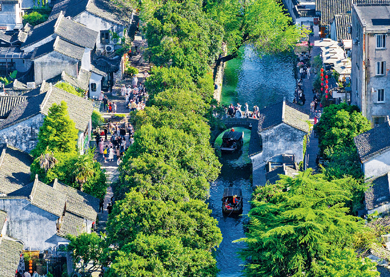 一個(gè)5000多年的文明走向現(xiàn)代化,必然是淵源有自、匠心獨(dú)運(yùn),必然需要當(dāng)代中國人汲古潤今、守正創(chuàng)新。在平江路,傳統(tǒng)與現(xiàn)代、文化與科技、歷史感與未來感的反差與張力、共生與融合,使這里成為中華文明傳承發(fā)展的生動(dòng)現(xiàn)場?!白≡谶@里很有福氣,古色古香,到處都是古跡、到處都是名勝、到處都是文化。‘百步之內(nèi),必有芳草’,這句話可以用在這里。”習(xí)近平總書記在平江歷史文化街區(qū)考察時(shí)的話,是最好寫照。