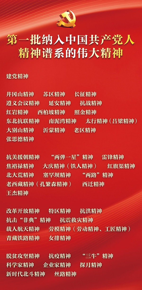 問(wèn)渠那得清如許?為有源頭活水來(lái)。偉大建黨精神和中國(guó)共產(chǎn)黨人精神譜系是源與流的關(guān)系,源遠(yuǎn)才能流長(zhǎng);是根與葉的關(guān)系,根深才能葉茂。我們黨在各個(gè)歷史時(shí)期形成的不同精神,在黨的百年奮斗歷程中不斷繁衍和傳承,本質(zhì)都是偉大建黨精神在不同時(shí)代的具體呈現(xiàn)和深度拓展,是偉大建黨精神的豐富和發(fā)展。井岡山精神、長(zhǎng)征精神、遵義會(huì)議精神、延安精神、西柏坡精神、抗美援朝精神、“兩彈一星”精神、改革開(kāi)放精神、特區(qū)精神、脫貧攻堅(jiān)精神、抗疫精神等偉大精神,構(gòu)建起了中國(guó)共產(chǎn)黨人的精神譜系。以偉大建黨精神為源頭的這一系列精神,跨越時(shí)空、歷久彌新,集中體現(xiàn)了黨的堅(jiān)定信念、根本宗旨、優(yōu)良作風(fēng),凝聚著中國(guó)共產(chǎn)黨人艱苦奮斗、犧牲奉獻(xiàn)、開(kāi)拓進(jìn)取的偉大品格,深深融入我們黨、國(guó)家、民族、人民的血脈之中,為我們立黨、興黨、強(qiáng)黨提供了豐厚滋養(yǎng)。