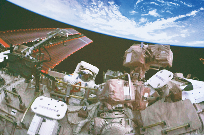 圖為2024年7月3日在北京航天飛行控制中心拍攝的神舟十八號(hào)航天員李聰出艙的畫(huà)面。 新華社記者 郭中正/攝