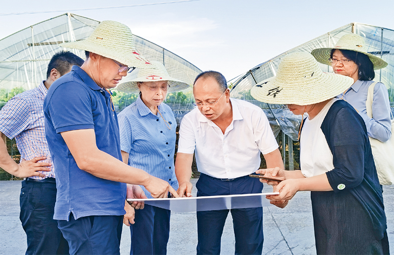 圖為2022年7月,徐利民(右三)和相關(guān)專家實(shí)地察看上山遺址博物館選址區(qū)塊。 張國萍/攝