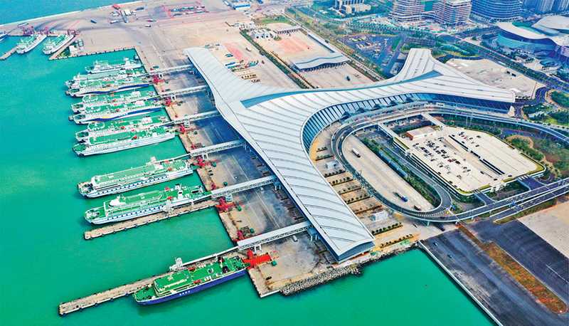 近年來(lái),我國(guó)全面深化改革開(kāi)放,實(shí)施自由貿(mào)易試驗(yàn)區(qū)提升戰(zhàn)略,22個(gè)自由貿(mào)易試驗(yàn)區(qū)和海南自由貿(mào)易港建設(shè)蓬勃展開(kāi)。圖為2023年11月29日拍攝的海口新海滾裝碼頭客運(yùn)綜合樞紐站項(xiàng)目,是海南自貿(mào)港封關(guān)運(yùn)作的重要配套設(shè)施。 新華社記者 郭程/攝