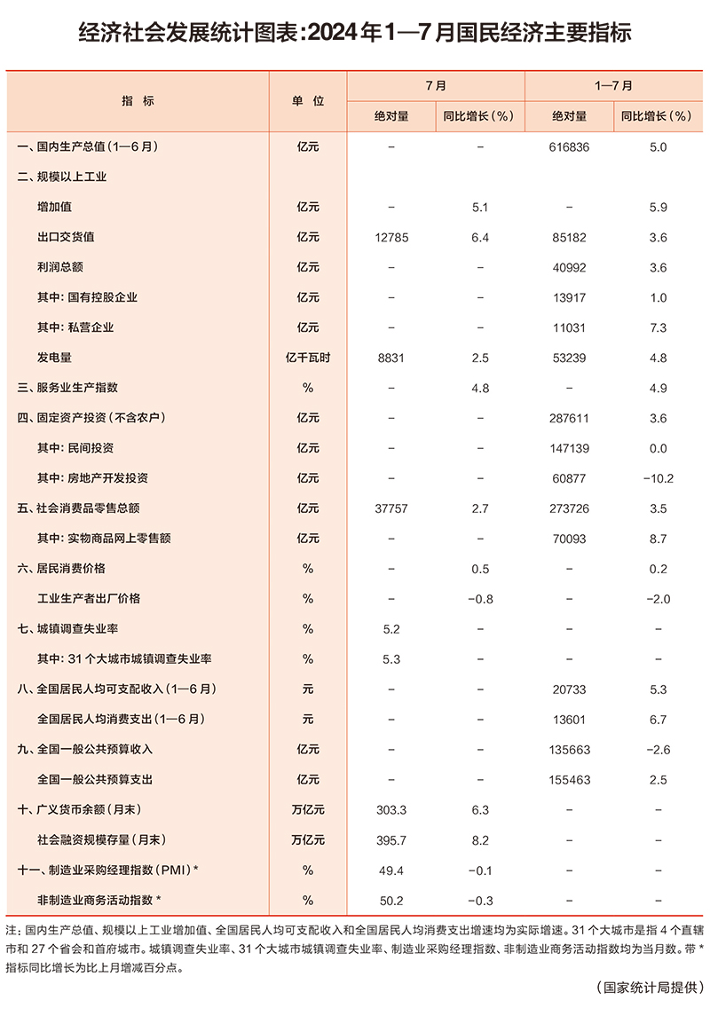 經(jīng)濟社會發(fā)展統(tǒng)計圖表:2024年1—7月國民經(jīng)濟主要指標(biāo)