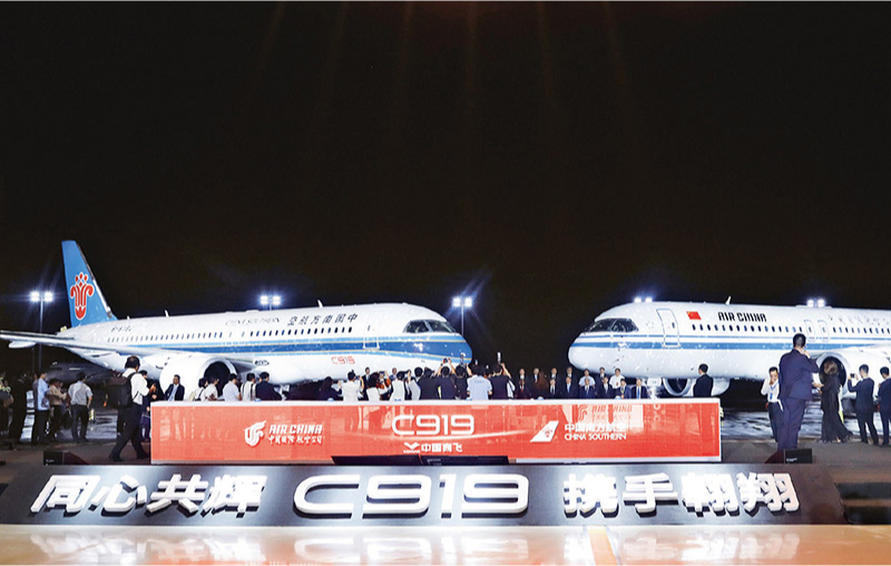 新時(shí)代以來,科技創(chuàng)新突破不斷實(shí)現(xiàn),創(chuàng)新驅(qū)動(dòng)發(fā)展能力持續(xù)提升,標(biāo)注著高質(zhì)量發(fā)展的生動(dòng)實(shí)踐,描繪著中國式現(xiàn)代化的新圖景。圖為2024年8月28日在中國商飛總裝制造中心浦東基地拍攝的國產(chǎn)大飛機(jī)C919交付儀式現(xiàn)場。 新華社記者 方喆/攝