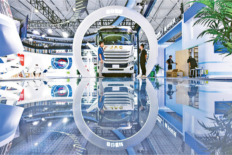 黨的二十屆三中全會(huì)提出,加快構(gòu)建促進(jìn)數(shù)字經(jīng)濟(jì)發(fā)展體制機(jī)制,完善促進(jìn)數(shù)字產(chǎn)業(yè)化和產(chǎn)業(yè)數(shù)字化政策體系。2024年8月28日至30日,2024中國國際大數(shù)據(jù)產(chǎn)業(yè)博覽會(huì)在貴州貴陽舉辦。圖為工作人員在介紹無人駕駛重型卡車。 新華社記者 楊文斌/攝