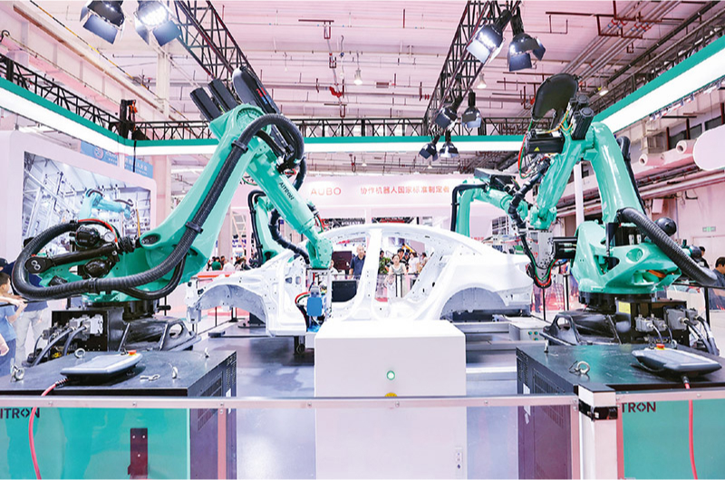 隨著信息化、工業(yè)化不斷融合,以機(jī)器人科技為代表的智能產(chǎn)業(yè)蓬勃興起,成為現(xiàn)時(shí)代科技創(chuàng)新的一個(gè)重要標(biāo)志。一路前行,我國(guó)機(jī)器人產(chǎn)業(yè)從小到大、從大到強(qiáng),以空前的廣度和深度融入人們的生產(chǎn)生活。如今,我國(guó)已經(jīng)成為全球最大的機(jī)器人市場(chǎng)和生產(chǎn)國(guó)。圖為2024年8月22日,在北京舉辦的2024世界機(jī)器人大會(huì)上,機(jī)器人正在進(jìn)行汽車(chē)四機(jī)點(diǎn)焊作業(yè)展示。 人民圖片 陳曉根/攝