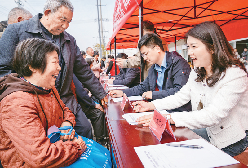 2024年4月11日,江蘇省海安市孫莊街道人大工委組織市人大代表、街道議政代表走進當?shù)丶校憔嚯x接待選民群眾,講解政策法規(guī)、派發(fā)宣傳資料,協(xié)調解決他們在生產(chǎn)生活中的實際困難。圖為當日,人大代表在集市上面對面傾聽群眾的意見和建議。 人民圖片 翟慧勇/攝