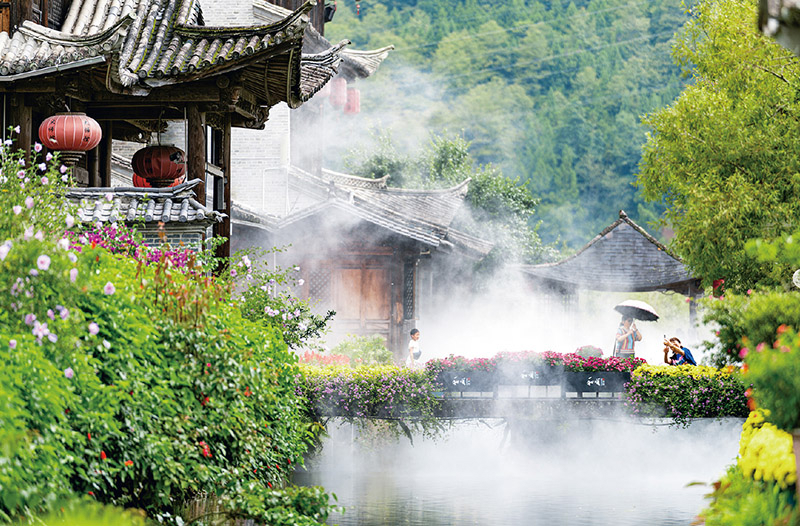 不論是生態(tài)保護(hù),還是文化傳承,最終的落腳點(diǎn)都是人民的幸福生活。在一些古鎮(zhèn)旅游開發(fā)過(guò)程中,有的地方將原住居民搬出景區(qū),遷舊建新,而和順古鎮(zhèn)并沒(méi)有這么做。云南柏聯(lián)和順旅游文化發(fā)展有限公司負(fù)責(zé)人說(shuō):“作為和順古鎮(zhèn)開發(fā)運(yùn)營(yíng)的主體,我們特別強(qiáng)調(diào)將發(fā)展的成果和當(dāng)?shù)鼐用窆蚕?。公司共?00多名職工,本地居民就占到了80%以上,每年還用門票收入為全鎮(zhèn)農(nóng)業(yè)戶口的5300多位居民繳納城鄉(xiāng)居民醫(yī)療保險(xiǎn),并設(shè)立幼兒教育保障金、養(yǎng)老金等;全鎮(zhèn)80%以上居民直接或間接參與旅游發(fā)展,很多居民還將家里的老房子改造成民宿、餐廳,借著古鎮(zhèn)的‘流量’經(jīng)營(yíng)致富。我們做到了在古鎮(zhèn)開發(fā)過(guò)程中沒(méi)有一戶居民搬走?!笔聦?shí)也證明,只有讓當(dāng)?shù)乩习傩帐芤?,古?zhèn)才能越來(lái)越好,真正實(shí)現(xiàn)和順和諧。
