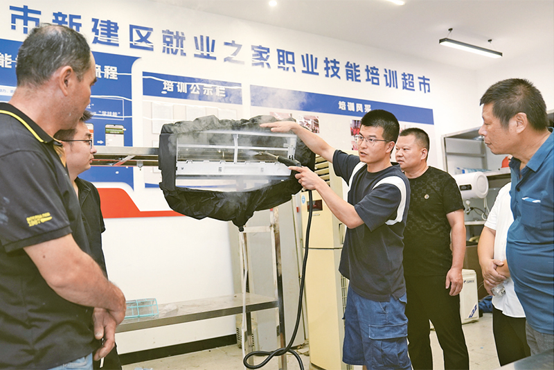 黨的二十屆三中全會(huì)強(qiáng)調(diào),要健全終身職業(yè)技能培訓(xùn)制度。圖為2024年9月12日一位老師在給學(xué)員進(jìn)行家電清洗技術(shù)培訓(xùn)。 新華社記者 萬(wàn)象/攝