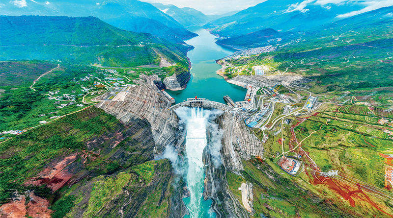 白鶴灘水電站是實(shí)施“西電東送”的國(guó)家重大工程,安裝的全球單機(jī)容量最大功率百萬(wàn)千瓦水輪發(fā)電機(jī)組,標(biāo)志著我國(guó)高端裝備制造的重大突破。其中左岸8臺(tái)百萬(wàn)千瓦水輪發(fā)電機(jī)組全部由東方電氣集團(tuán)研制供貨。圖為2022年9月22日,白鶴灘水電站全部機(jī)組投產(chǎn)發(fā)電之際的電站鳥瞰。 東方電氣集團(tuán)供圖