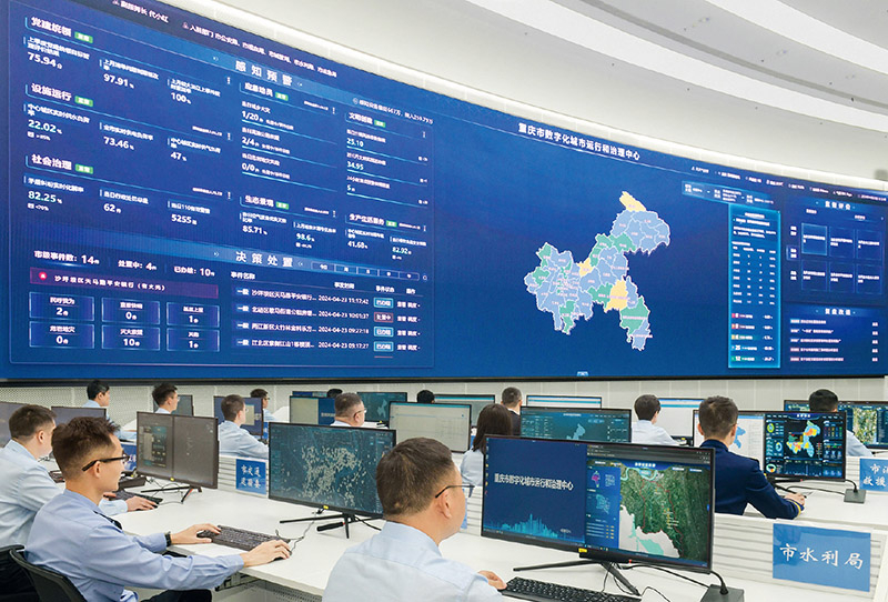 2023年4月,數(shù)字重慶建設(shè)大會(huì)召開,拉開了重慶數(shù)字化變革重塑大幕。2023年11月,重慶印發(fā)《數(shù)字化城市運(yùn)行和治理中心建設(shè)方案》。“重慶‘市、區(qū)縣、鎮(zhèn)街’三級(jí)數(shù)字化城市運(yùn)行和治理中心,是數(shù)字重慶建設(shè)的重大成果,是推動(dòng)超大城市現(xiàn)代化治理的智能中樞?!睌?shù)字重慶大數(shù)據(jù)應(yīng)用發(fā)展有限公司副總經(jīng)理劉光杰說,“實(shí)現(xiàn)‘市、區(qū)縣、鎮(zhèn)街’三級(jí)高效聯(lián)動(dòng),是數(shù)字化城市治理的重要舉措?!?/p>