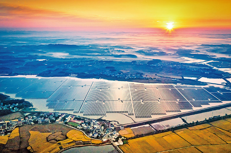 中國(guó)華能通過(guò)漁光互補(bǔ)、農(nóng)光互補(bǔ)、風(fēng)電光伏一體化等方式,推動(dòng)新能源發(fā)展與生態(tài)治理協(xié)同共進(jìn),助力鄉(xiāng)村振興。圖為位于江西省上饒市鄱陽(yáng)縣的華能麻葉湖光伏電站。 中國(guó)華能供圖