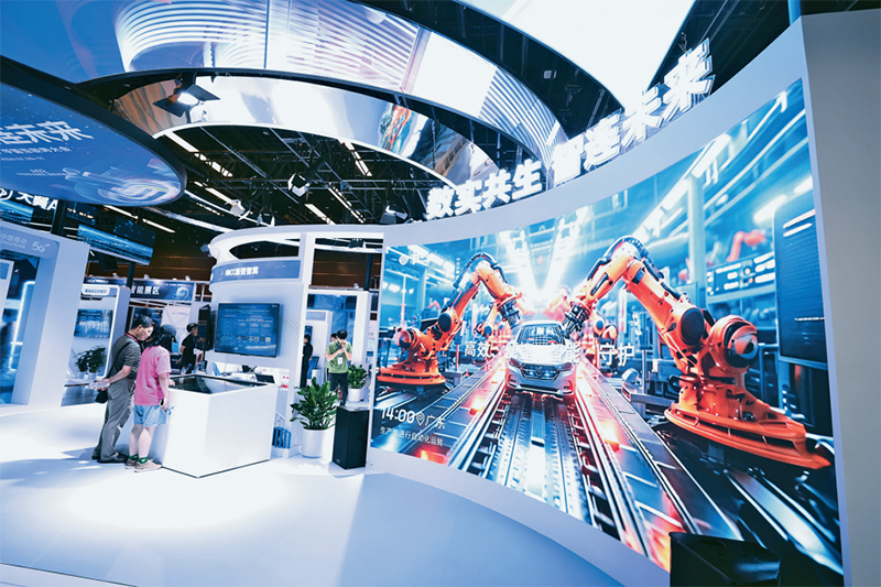 2024年7月9日,由中國互聯(lián)網(wǎng)協(xié)會主辦的2024中國互聯(lián)網(wǎng)大會在北京國家會議中心開幕,大會以“互聯(lián)三十載 智匯新質(zhì)變”為主題,聚焦人工智能、工業(yè)互聯(lián)網(wǎng)、數(shù)據(jù)要素、算力等熱點。圖為7月10日,參觀者在大會上參觀中國移動展區(qū)。 中新社發(fā) 陳曉根/攝